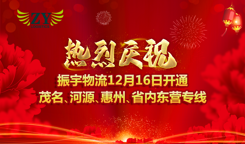 熱烈祝賀振宇物流12月16日開通茂名、河源、惠州、省內東營專線!