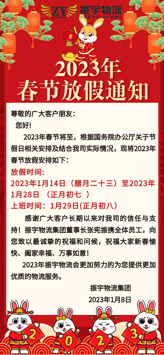 振宇物流集團丨2023年春節放假通知
