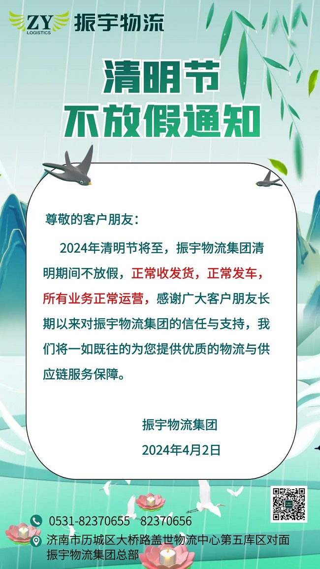 振宇物流集團(tuán)丨清明期間正常運(yùn)營(yíng)通知