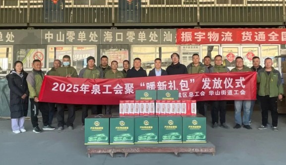 寒天暖意,工會同行。為深入踐行市、區總工會關于關心關愛新就業形態勞動者的工作部署,12月8日,華山街道工會“泉工會聚‘暖新禮包’發放活動”走進振宇物流集團,將暖心關懷精準送達基層一線。華山街道黨工委副書記連東坡、工會副主席王曉鳴一行深入企業,為新就業形態勞動者親手送上滿載關懷的“暖新禮包”,切實讓職工感受到工會組織的溫暖與力量。振宇物流集團董事長張憲振、總經理孫松、工會主席張貴強全程陪同,對華山街道及工會領導的關心支持表示衷心感謝。
