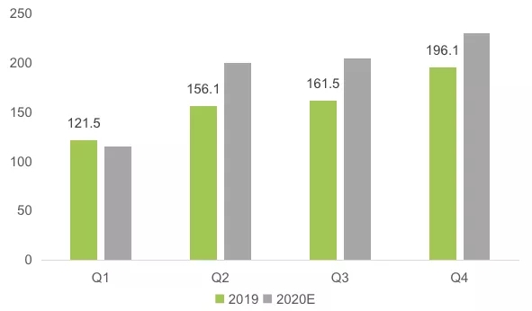 受新型冠狀病毒疫情影響,多地出臺了交通管制和人員限行的措施,短期對快遞業務發展有較大影響,主要體現在一季度數據。假定疫情在2月底得到有效控制的情況下,預計一季度快遞業務量120億件左右,總體與上年基本持平。經歷3月恢復調整后,市場需求將加速釋放,二季度快遞業迎來速度提升期,增速將明顯加快,預計該季度業務量規模為200億件左右,增速將重回30%以上。下半年將恢復常態運行,預計三季度和四季度快遞業務量規模分別為200億件和230億件左右,全年快遞業務量規模將超過750億件。快遞價格觸底反彈,預計全年業務收入增速將首次超過業務量增速。