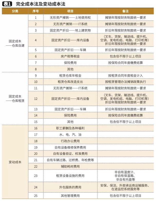 按照倉庫自建和租賃情況,完全成本法及變動成本法,如表1。作業/動作成本表,如表2。